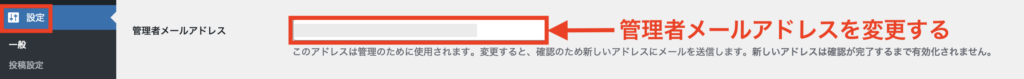 設定方法は、管理画面の左メニューから「設定」をクリック→「管理者メールアドレス」を変更して完了です。