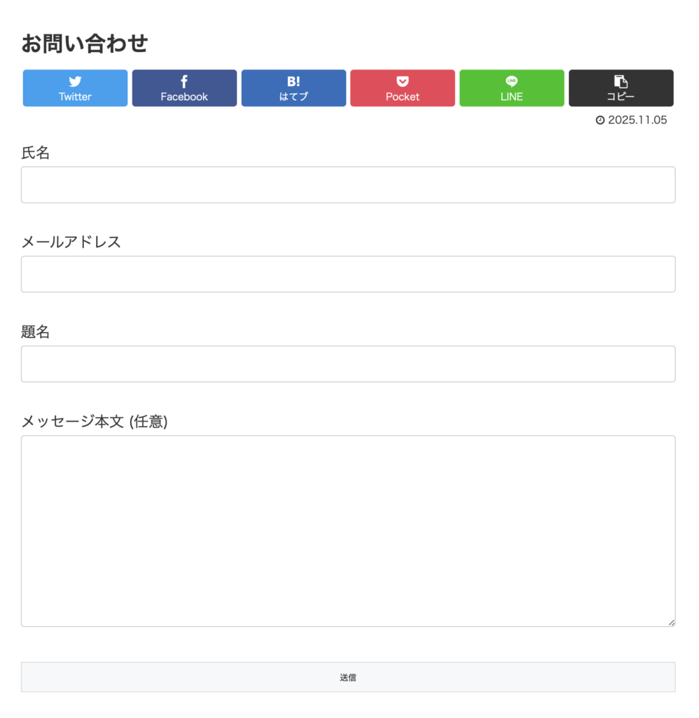 下記のような「お問い合わせフォーム」が表示されたら完成です!
