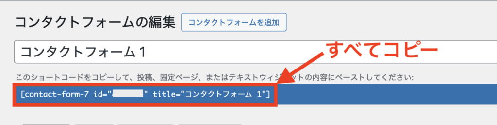 タイトルの下に表示されている青の部分(ショートコード)をすべてコピーします。