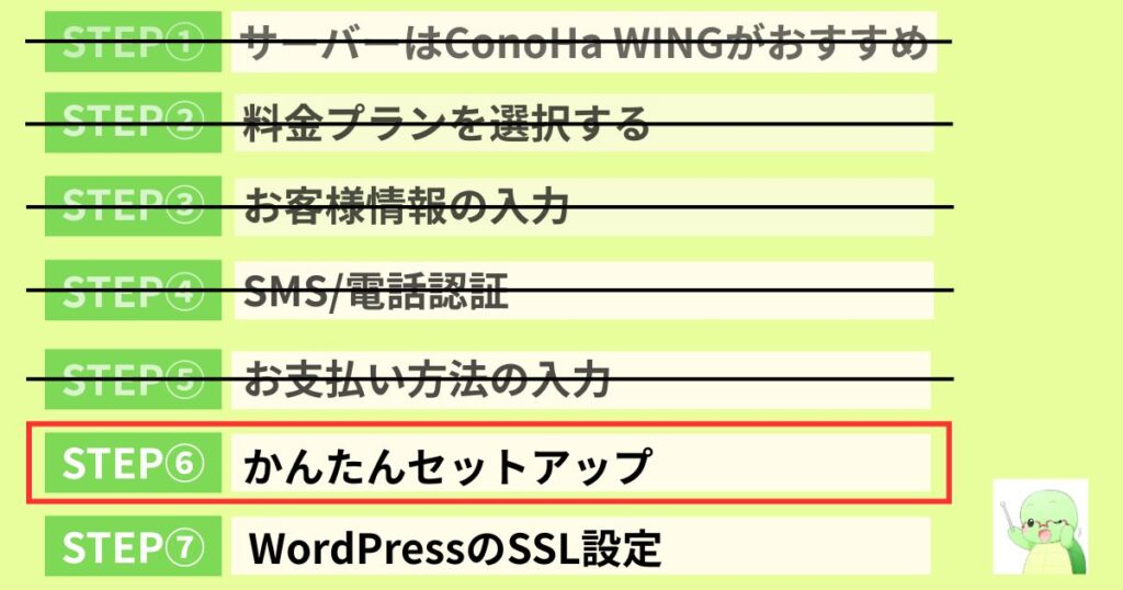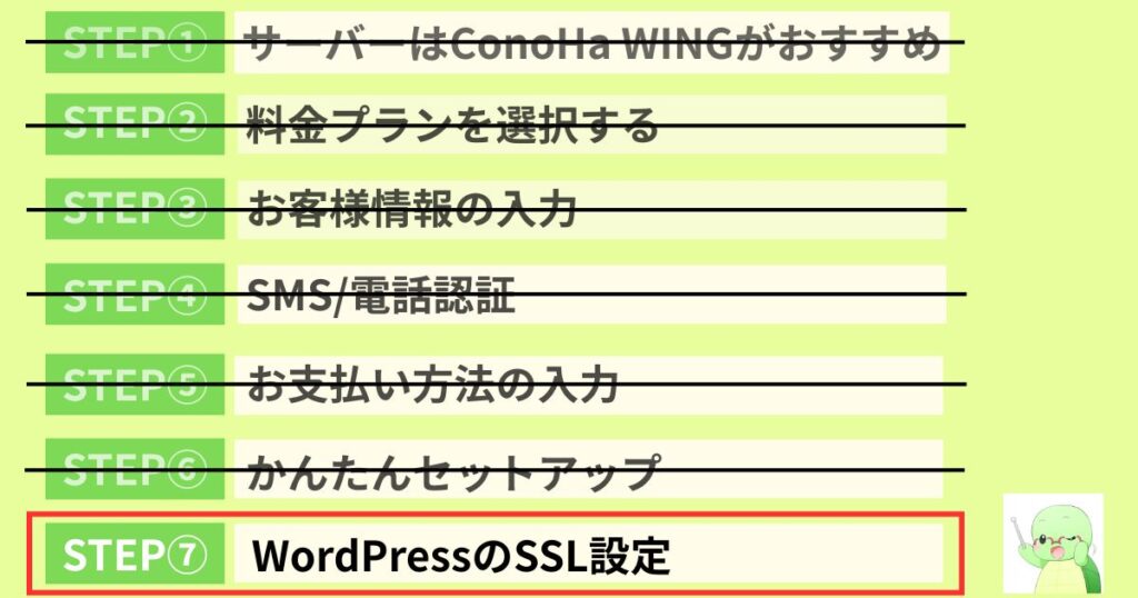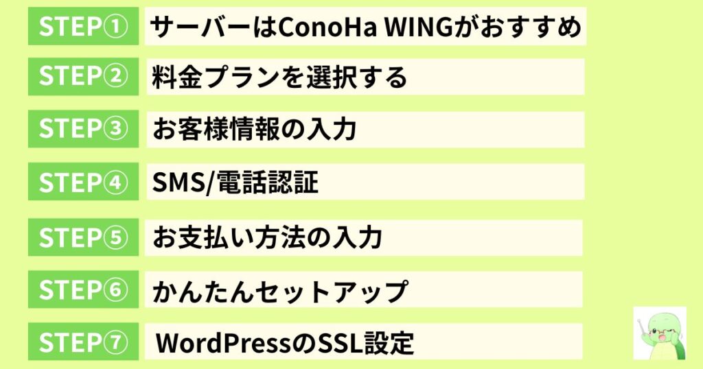 WordPressブログの開設は、下記の7つのSTEPで完了します。