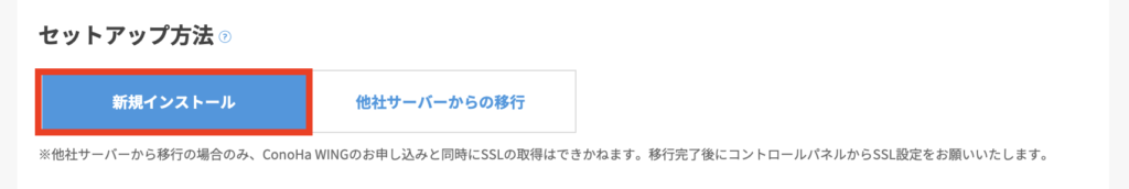 ※エックスサーバーなど他社のサーバーを契約していて、ConoHa WINGへ移行する場合は、「他社サーバーからの移行」を選択してください。