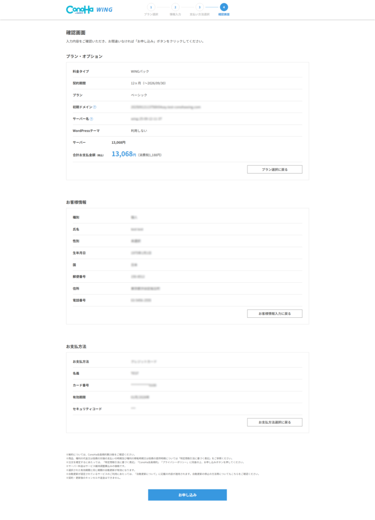 OKであれば「お申し込み」をクリックしましょう。