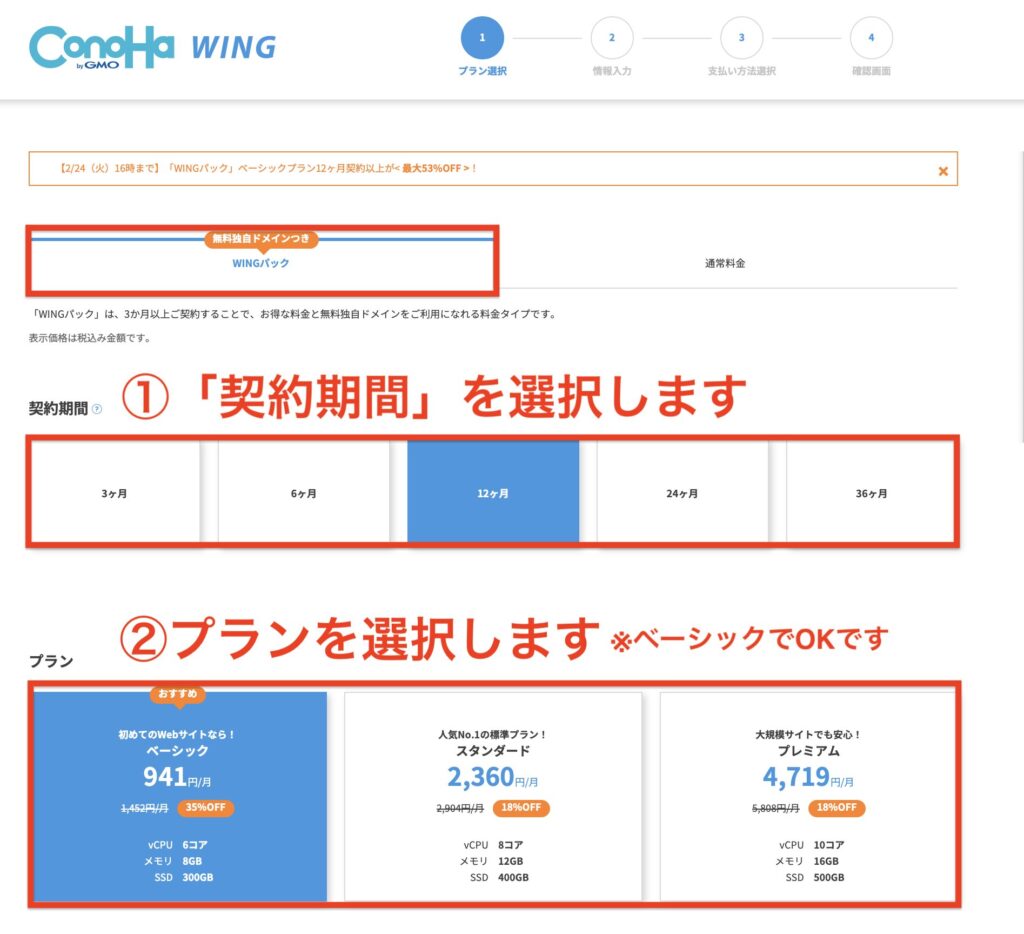 今回は、無料ドメインが2つ付いてくる「WINGパック」を例に解説していきます。
