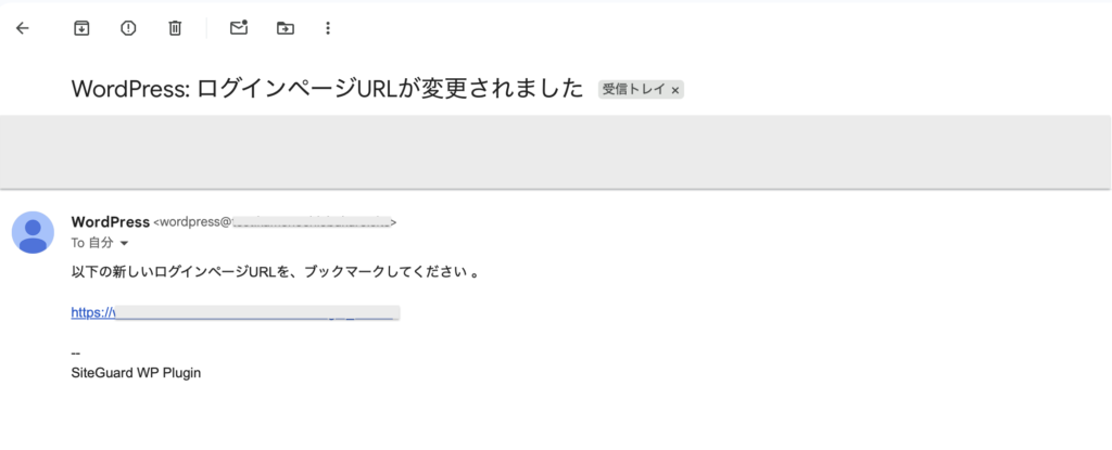 「WordPress: ログインページURLが変更されました」と言う件名のメールも届きます。