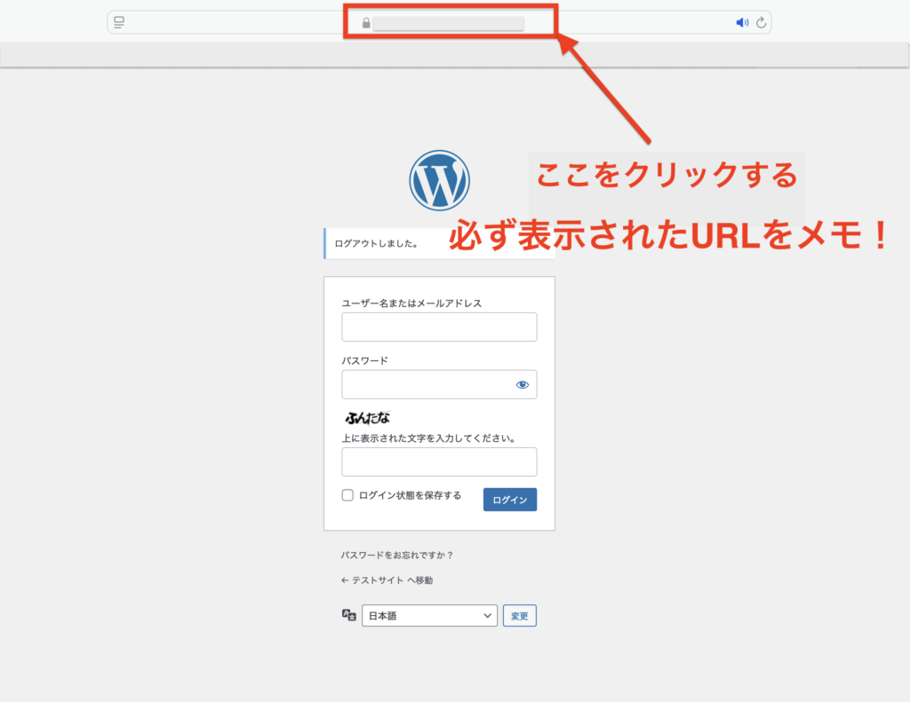 表示されたURL「https:あなたのサイトドメイン/login_数字」をメモしておいてください。